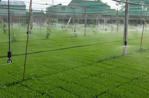 ??????? 微噴是利用折射、旋轉(zhuǎn)或輻射式微型噴頭將水噴灑到作物枝葉等區(qū)域的灌水形式.屬于微灌范疇。微噴的工作壓力低,流量小,既可增加土壤水分,又能提高空氣濕度,調(diào)節(jié)局部小氣候,應(yīng)用十分廣泛。另外,還可以借助部分微噴頭的超強(qiáng)霧化功能,用于扦插育苗、飼養(yǎng)場(chǎng)降溫等場(chǎng)所。