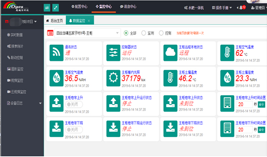 基地種植管理人員反映此系統(tǒng)通過手機APP及控制室電腦PC端,實時監(jiān)測大棚溫室的各種數(shù)據(jù),可以智能控制溫室大棚內的電機設備,節(jié)省人力成本;