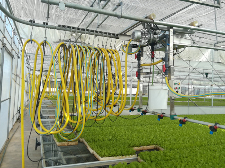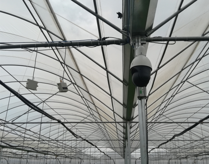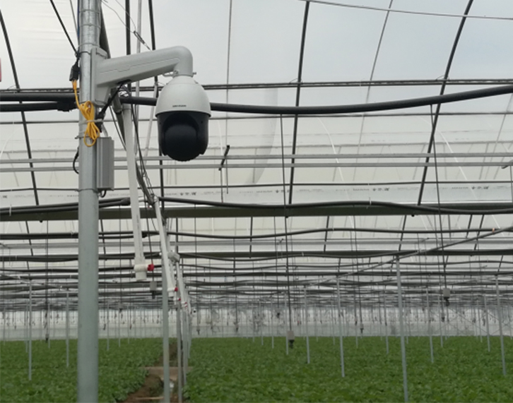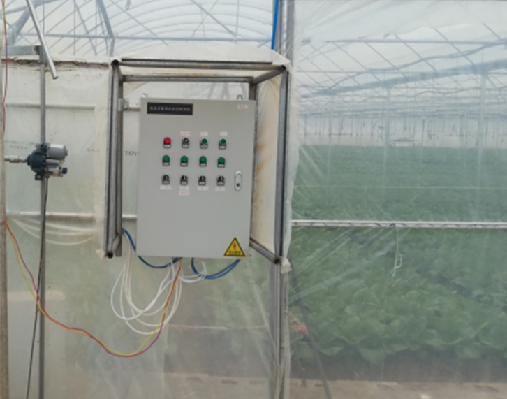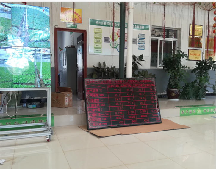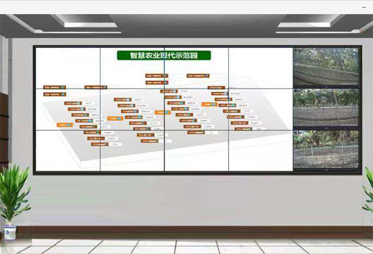 實例概況:智能連棟大棚面積連體棚11.4畝左右:每個跨度長59.4米*寬8米,智能連棟大棚分為兩個區(qū)域監(jiān)測及控制;溫室智能控制功能系統(tǒng)配置:連棟大棚室內(nèi)六個監(jiān)測點,分別監(jiān)測空氣溫度、濕度、光照強(qiáng)度,二氧化碳,土壤溫濕度電導(dǎo)率,土壤酸堿度等;通過采集設(shè)備監(jiān)測的數(shù)據(jù)實時上傳到云服務(wù)器,通過云平臺運(yùn)算分析及聯(lián)動控制,自動控制現(xiàn)場電機(jī)設(shè)備,現(xiàn)場設(shè)備有頂卷膜,側(cè)卷膜,前卷膜,水肥一體機(jī),自動噴藥機(jī)等, 控制系統(tǒng)自動調(diào)節(jié)溫室大棚內(nèi)的環(huán)境指標(biāo)及土壤墑情,確保大棚內(nèi)環(huán)境最適宜基地種植物生長;整套控制系統(tǒng)還包含:視頻監(jiān)控,演示展廳拼接屏.