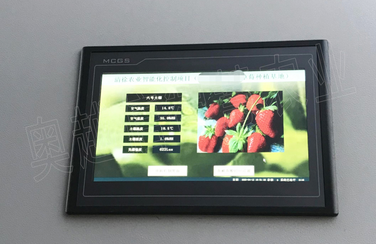 但是當科技賦予農(nóng)業(yè)力量,農(nóng)業(yè)也能變得強大。為了對草莓大棚進行科學(xué)化種植及精細化管理,奧越信智慧農(nóng)業(yè)在這里部署了全方位的溫室智能控制系統(tǒng)設(shè)備,對草莓生長息息相關(guān)的空氣溫濕度、光照度、土壤溫濕度、土壤PH值等環(huán)境因素進行實時監(jiān)控,并對即將到來的異常天氣進行預(yù)測,提醒基地提前做好預(yù)防措施。另外,面對草莓大棚的保溫被、卷膜、灌溉等設(shè)備,奧越信智慧農(nóng)業(yè)安裝了自動遠程控制系統(tǒng),為草莓營造最適宜的生長環(huán)境,提高種植環(huán)境標準化及精細化。